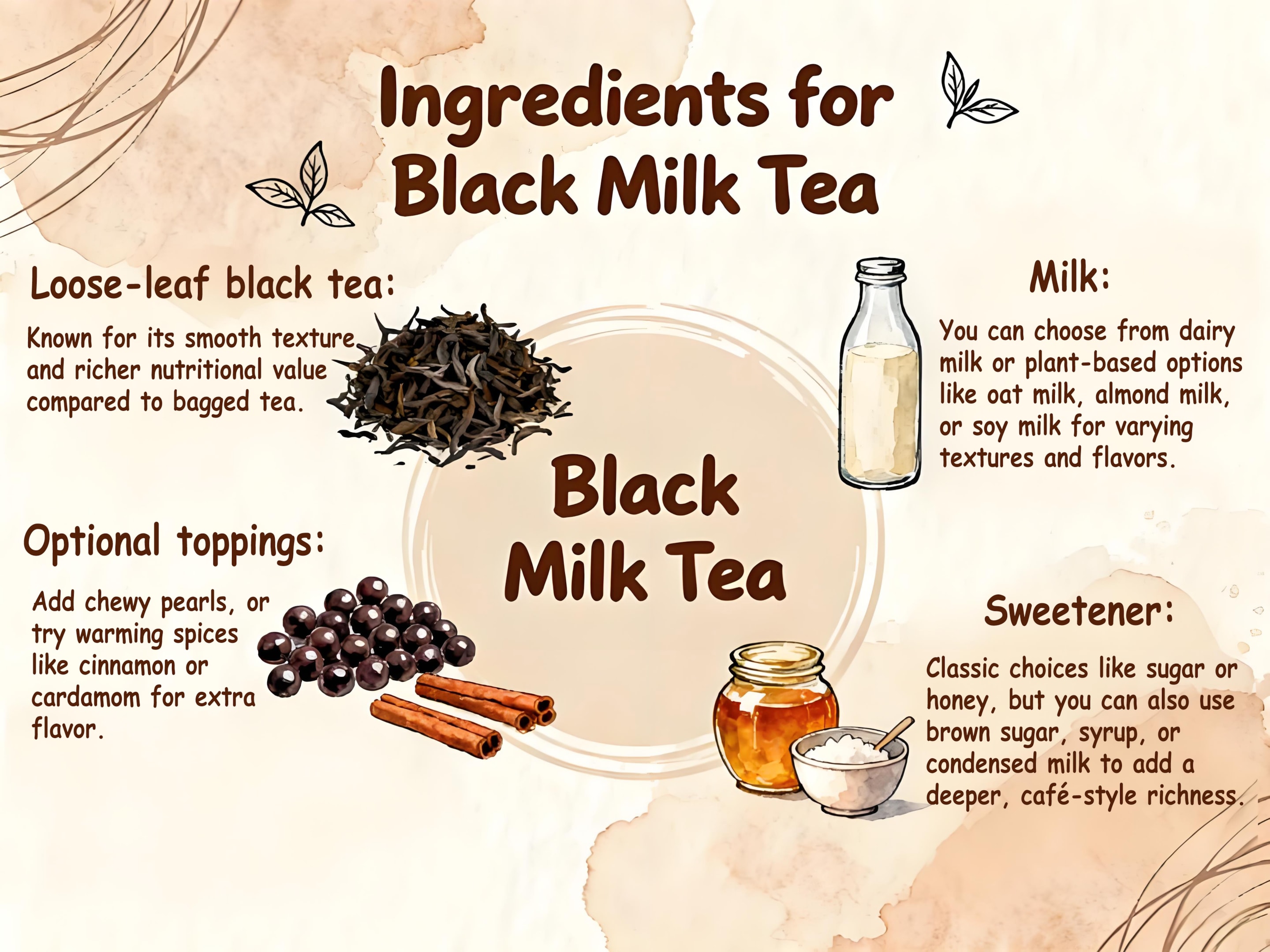 Making black milk tea at home is simple. With quality tea leaves and a few ingredients, you can recreate a café-style drink.