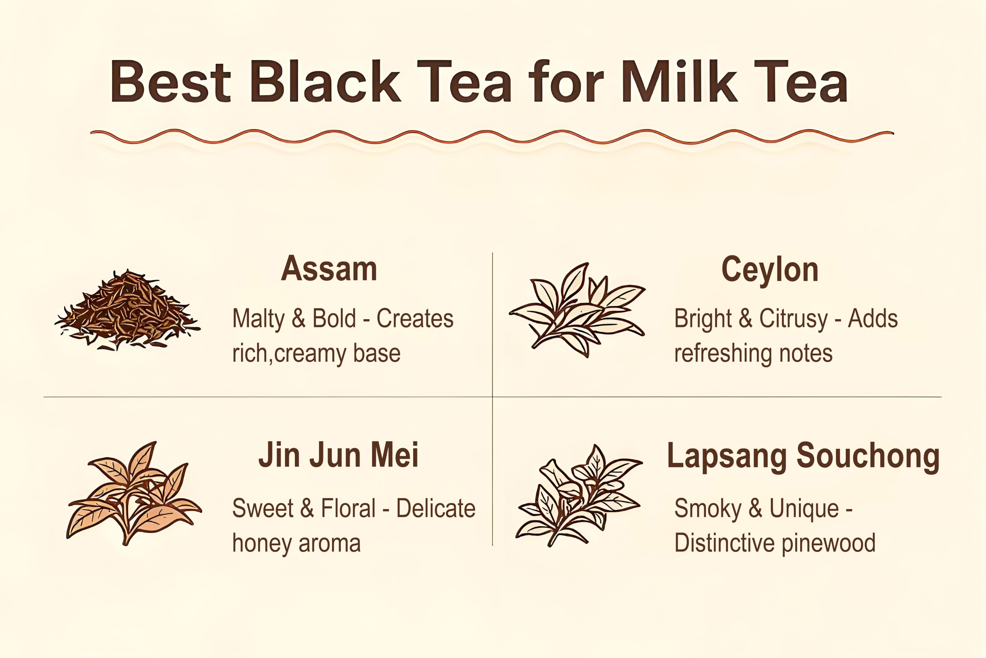 To make the perfect cup, choosing the right black tea is key. Different teas bring different layers of flavor and texture to milk tea. Here are some popular options: