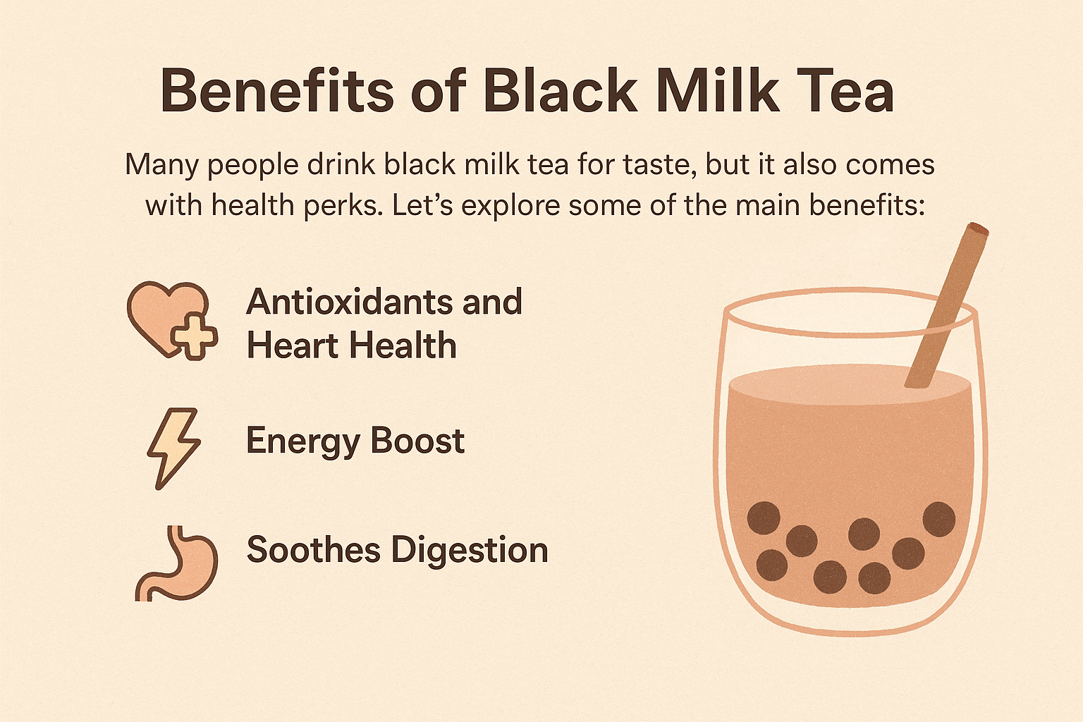 Many people drink black milk tea for taste, but it also comes with health perks. Let’s explore some of the main benefits: