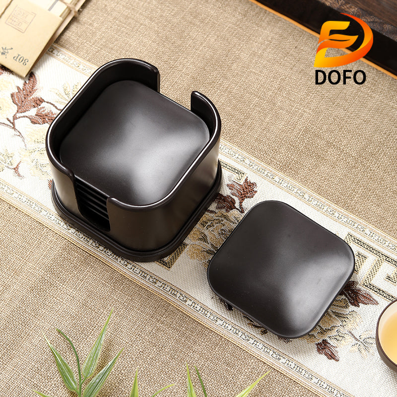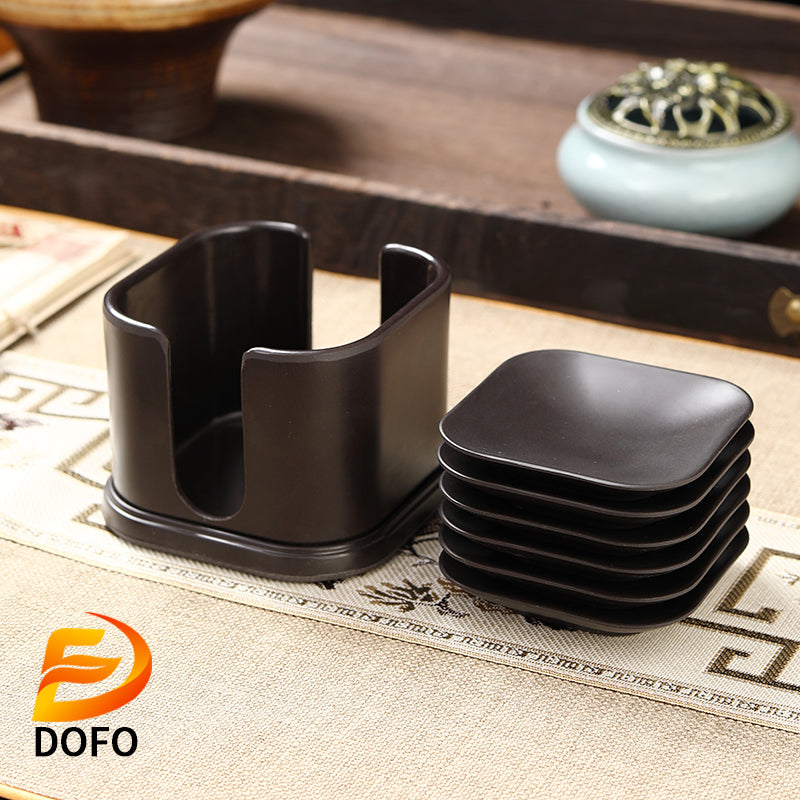 Includes six Bakelite square coasters and a Storage box ;Sandalwood tea coaster, non-slip and heat-insulating; equipped with a storage box, more convenient for storage and use;