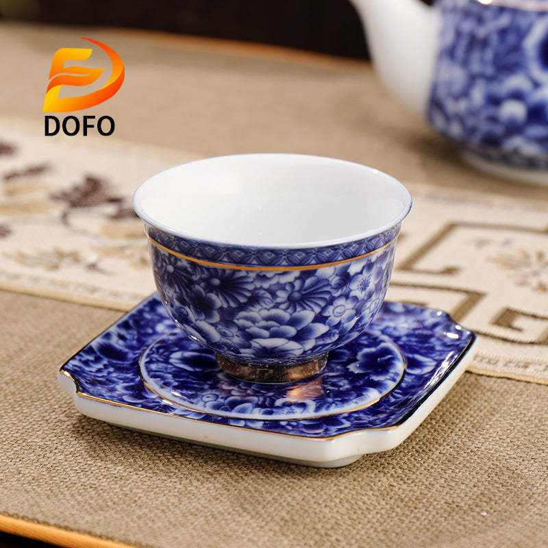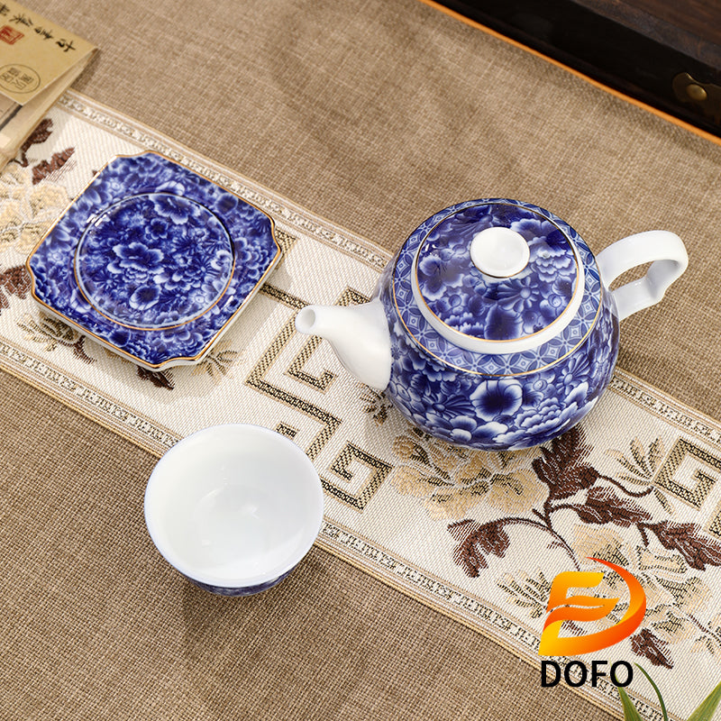 Product name: Blue and white old ice plum, one pot and two cups with coasters(Chinese Tea Set)