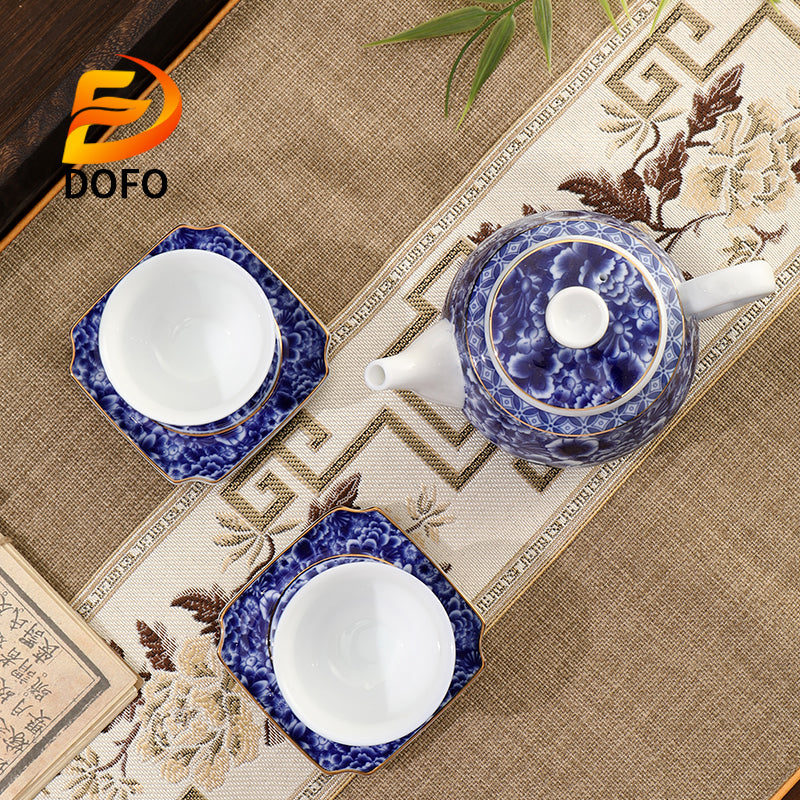Product description: Blue and white old ice plum, one pot and two cups with coasters