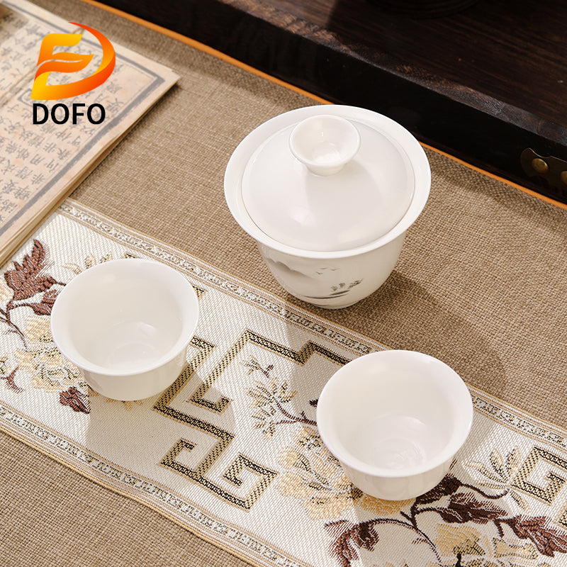 Product description:Includes a covered bowl and two tea cups;Covered bowl is 8.6cm long and 7cm high, with a capacity of about 110ml;Cup mouth 6.2cm*height 4cm